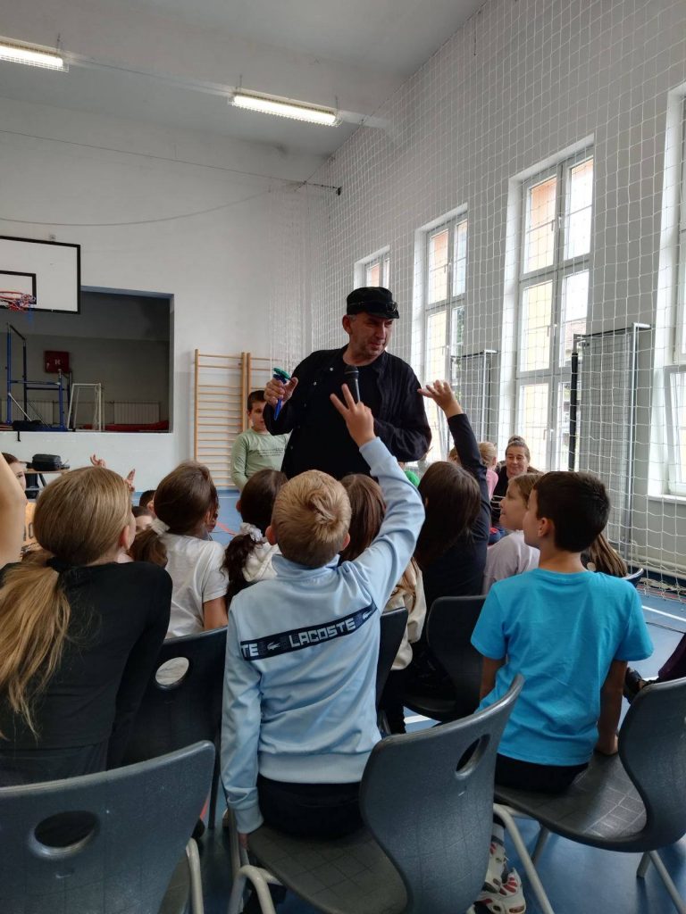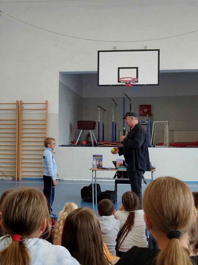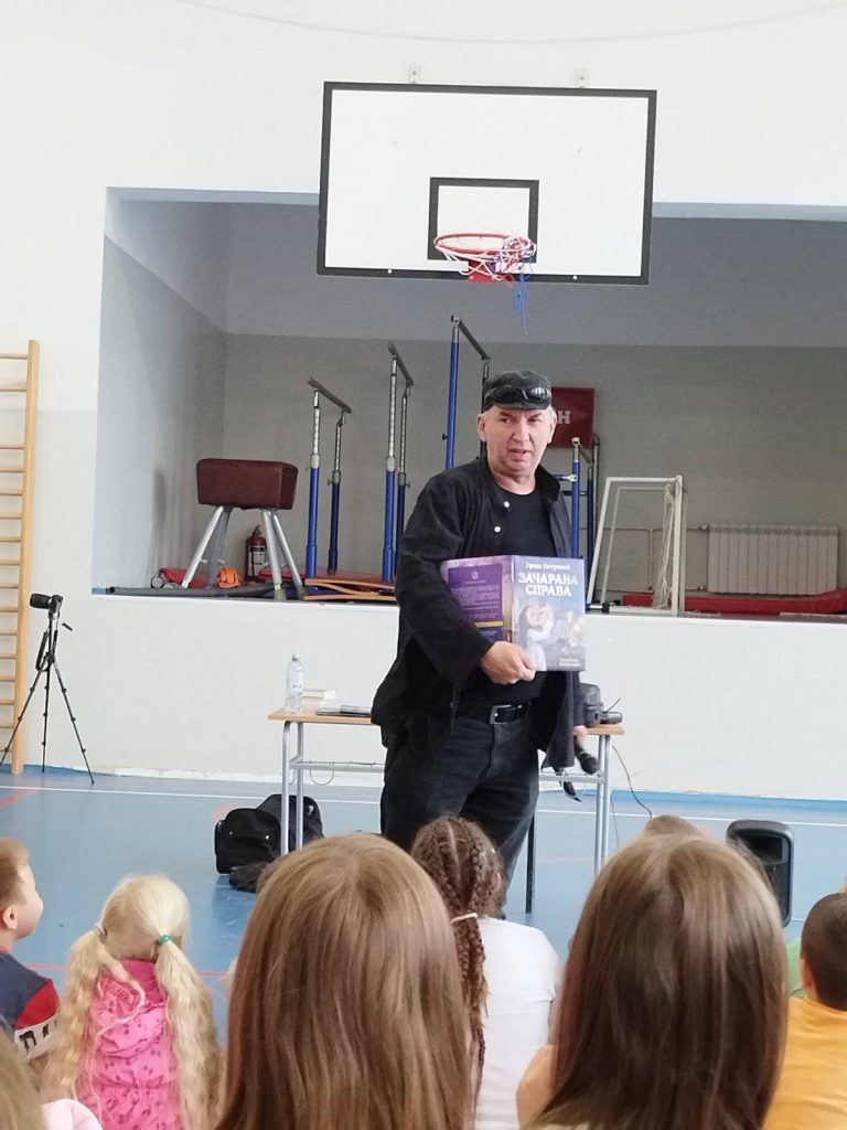 Захваљујући сарадњи са Културно-образовним центром данас смо имали част да угостимо познатог књижевника Уроша Петровића. Наши ученици млађих разреда провели су сат времена у дружењу и решавању креативних главоломки.