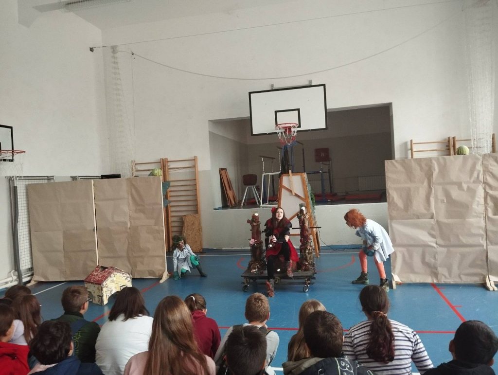 Данас је за ученике старијих разреда изведена представа ,,Чаробњак из Оза”. Захваљујући сарадњи са Културно-образовним центром уживали смо у изведби младих глумаца из Сурдулице. Преносимо вам делић атмосфере.